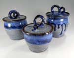 Creating them is a pretty simple process of just making a bowl that fits over the rim of the jar. Not exactly a complicate process, but that doesn’t mean it can’t be elegant or sophisticated. To me the key to this kind of lid is in the simplicity. It works well with simple, cleanly shaped pieces and as an extension of those lines. It also works best by being a continuation of the glazing aesthetic as you can see in the first two pics or by being an accent as seen in the last one.